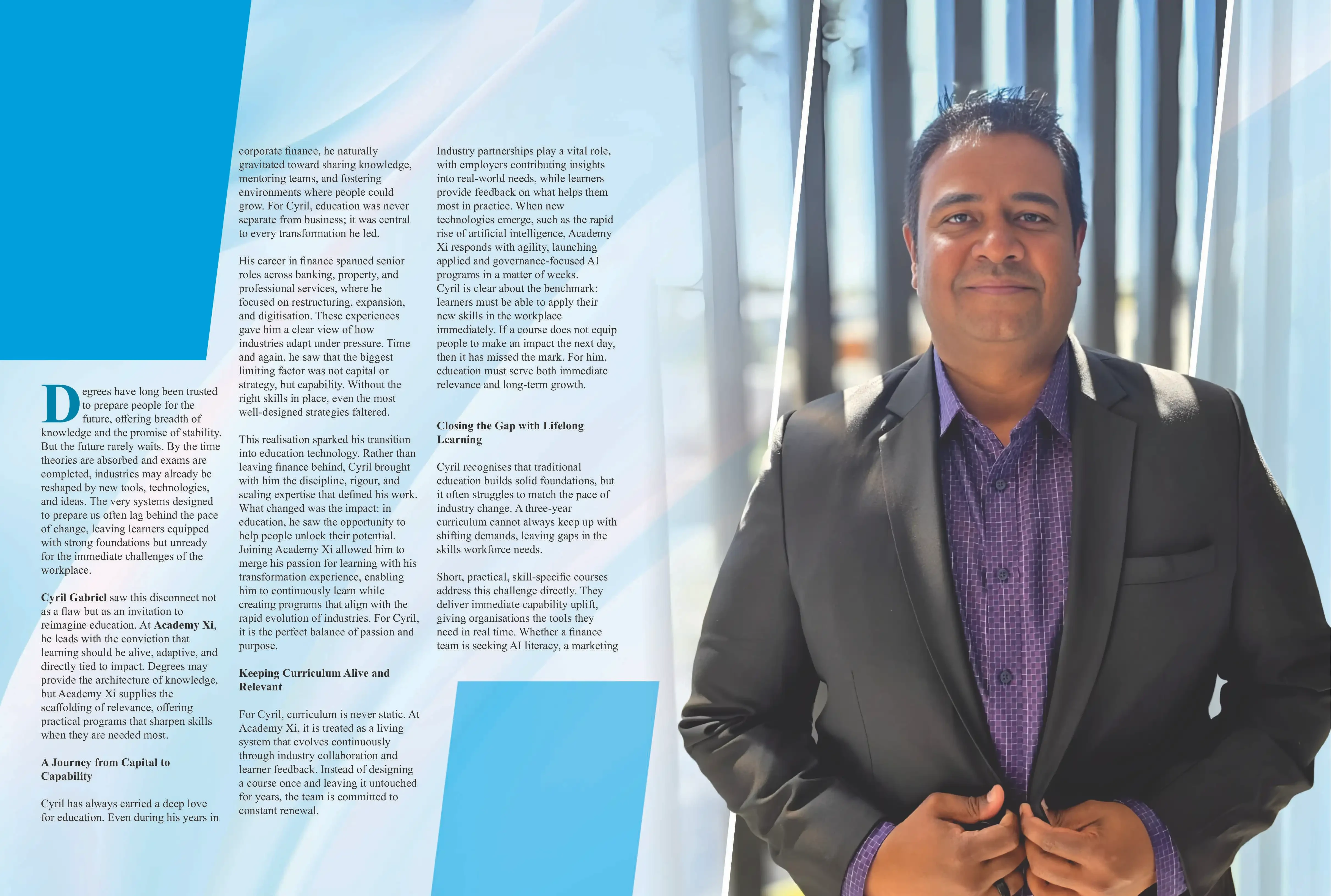 Cyril Gabriel saw this disconnect not as a flaw but as an invitation to reimagine education. At Academy Xi, he leads with the conviction that learning should be alive, adaptive, and directly tied to impact. Degrees may provide the architecture of knowledge, but Academy Xi supplies the scaffolding of relevance, offering practical programs that sharpen skills when they are needed most.